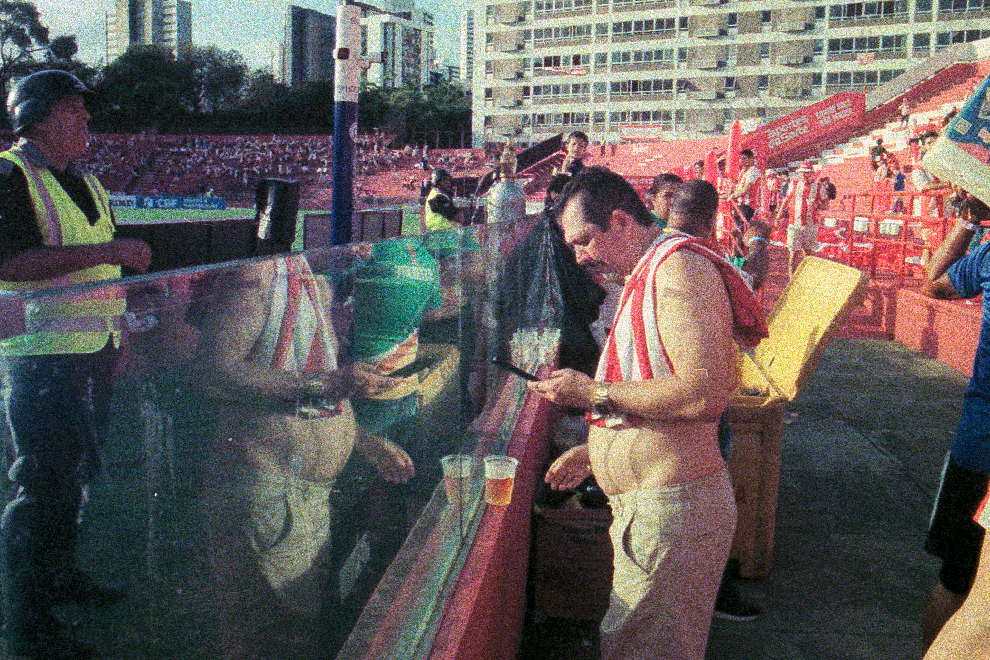 Fotos do Clube Náutico Capibaribe (Pernambuco) em analógico, feitas em diferentes jogos durante a campanha do acesso para a Série B, em 2025. Tenho explorado e documentado o movimento crescente do “analog football”, que tem conquistado público por seu apelo nostálgico e orgânico – um contraste marcante com o conteúdo digital atual, pasteurizado e instantâneo.